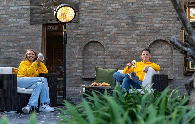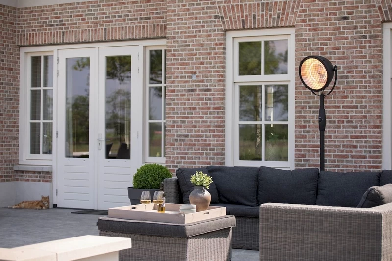 Deze elektrische terrasverwarmer van Sunred is ook goed te gebruiken op een open terras. Wind heeft namelijk geen invloed op de warmteverspreiding door het Halogeen verwarmingselement. De warmtegolf is kort, dat wil zeggen dat de intensiteit in korte tijd hoog is en je gevoelstemperatuur daardoor ook snel omhoog gaat. De warmte van deze terrasverwarmer kun je vergelijken met de zon: heerlijk dus.