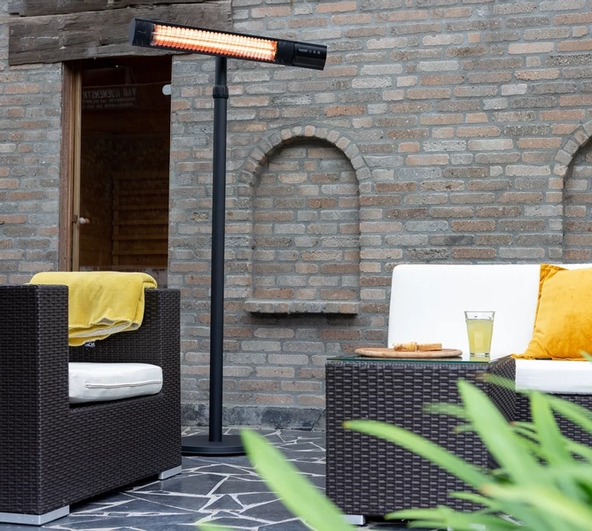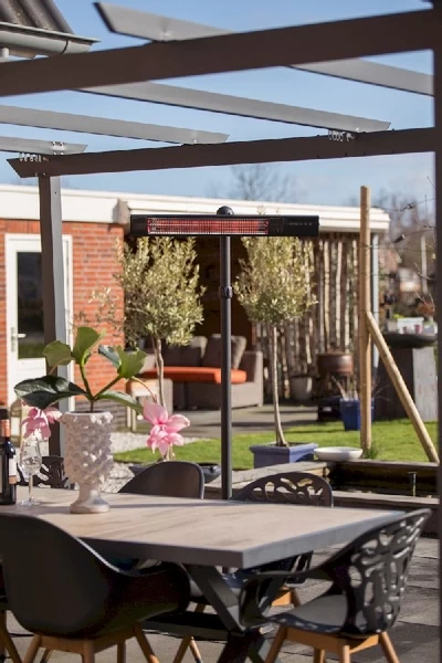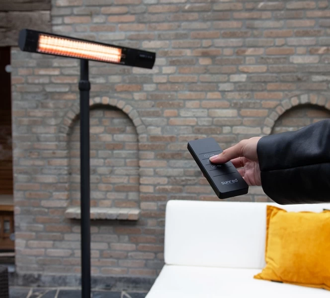 Met de Sunred Heater Royal Diamond Dark Standing geniet je altijd van de gewenste warmte. Je schakelt namelijk heel eenvoudig tussen 3 standen: 800, 1600 of 2500 Watt. Wanneer je deze elektrische terrasverwarmer inschakelt met de afstandsbediening, geniet je al binnen 5 seconden van de heerlijke warmte.